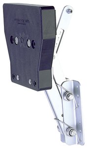 Garelick Aluminum Auxiliary Outboard Motor Brackets are retractable. These units bolt to transom holding motor safely out of the water. Units swings down to position for propulsion.