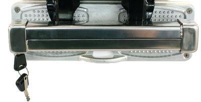 Polished 316 stainless steel high security key locks with anti-drill protection secure outboards to your boat. Backing plate installs under engine transom nut and fits up to 1/2" engine bolts. Key locks with anti-drill protection.Noise dampeners reduce rattle. Each lock includes two keys, which cannot be duplicated without 4 digit key card (also included).